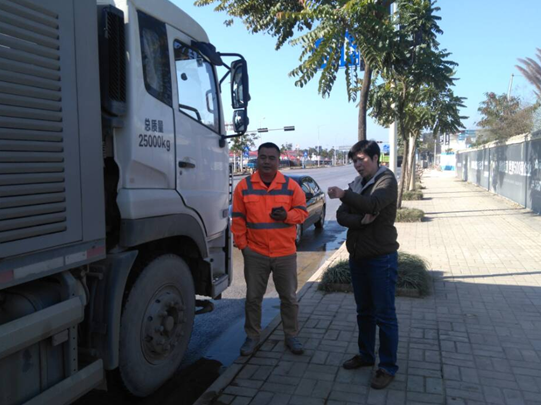 站领导巡查扬尘工作,向水车司机了解工作情况