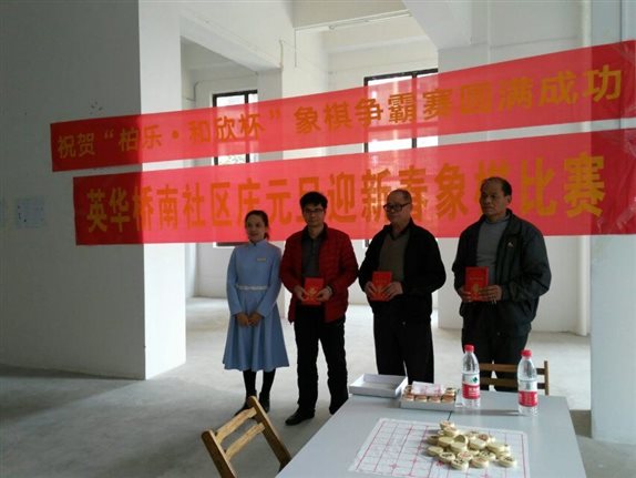 在元旦佳节来临之际,为进一步丰富辖区居民文化生活,给广大棋友提供一个以棋会友的机会和展示才华的舞台。12月24日,英华桥南社区携手和欣物业举办2017年“庆元旦 迎新春”象棋比赛,得到了众多象棋热爱者的大力支持,许多退休职工、辖区党员也踊跃报名,积极参赛。