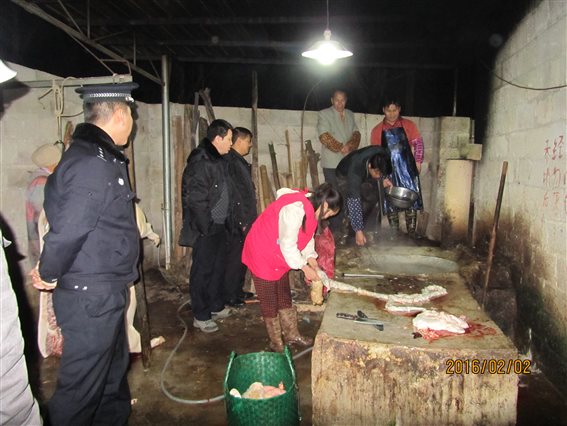 为全面提升江南区食品安全监管水平,确保2016年春节期间生猪产品质量安全,2016年2月2日凌晨4点,江南区动物卫生监督所联合公安部门出动执法车辆4部,执法人员20人次,在江西镇安平村开展打击私屠滥宰执法行动。