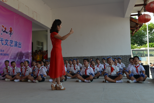 开场《平话歌谣话传承》以上课的形式教学生唱平话山歌童谣