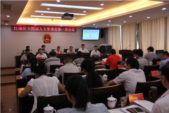 本次常委会会议大家集中学习了江南区人大常委会议事规则、组成人员守则及人事任免办法。根据江南区人民法院林振明院长的提请,通过了免去罗君同志的江南区人民法院副院长、审判委员会委员、审判员职务事项。听取和审议了城区政府关于江南区2016年上半年国民经济和社会发展计划执行情况的报告,以及江南区人大财政经济委员会的初审报告。财经专委在报告中指出,城区政府及相关部门面对国际国内经济下行,经济发展减速换档,结构调整阵痛持续的严峻形势,坚持稳中求进工作总基调,突出转型升级,着力提升经济发展质量,突出项目带动,着力增强经济发展后劲,突出城区建设,着力改善市容环境品质,突出民生改善,着力提高居民生活水平。2016年上半年国民经济和社会发展计划执行情况总体良好。但是,当前城区经济运行和社会发展仍面临一些困难和问题:第一,经济下行压力仍然存在。具体表现在以下三个方面,一是个别指标增速回落;二是工业增长支撑不足;三是固定资产投资乏力。第二,部分主要指标增速低于预期目标,影响年度目标的实现。地区生产总值增速、规模以上工业增加值增速、社会消费品零售总额增速、城镇居民人均可支配收入增速均低于预期目标。第三,项目推进乏力,投资拉动能力亟需加强。第四,财源基础不牢,财政增收难度大。
